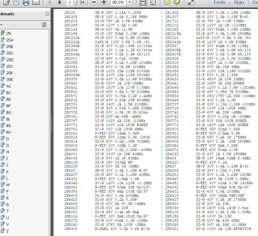 مشخصات ولتاژ آمپر و وات تعدادی ترانزیستور