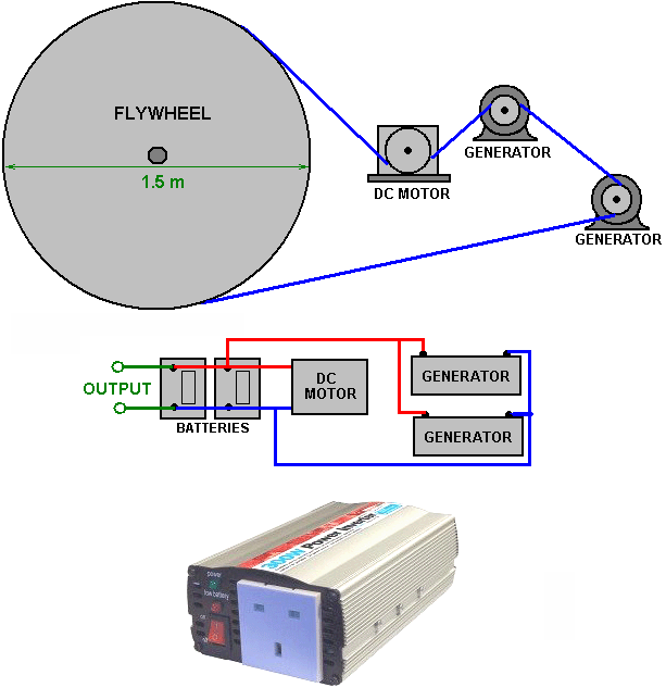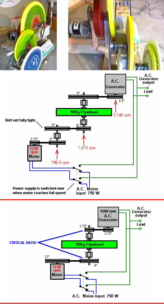 Another man has put a video on the web, showing a variation of this same principle. In his case, the flywheel is