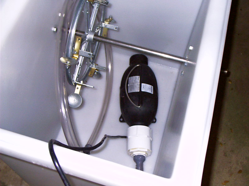 the liquid. A pipe located near the bottom of the compartment feeds the liquid to the pump which is located in the