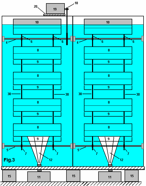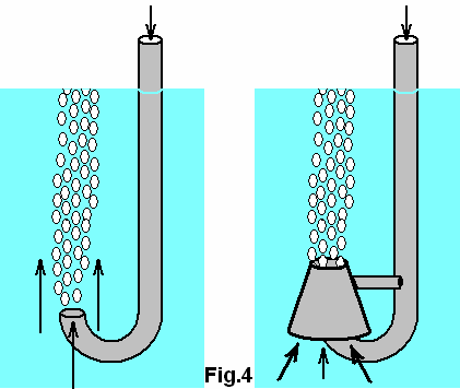 Fig.4. shows a method for further simplification, where the air is pumped from above the water surface. It is