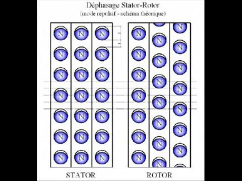این موتور با استفاده از رانش قطبهای همنام آهنربای دائمی کار می کند در اشکال و نمونه های عمودی و افقی گوناگون ساخته شده ولی برای استفاده ی همزمان از جاذبه ی زمین و رانش آهنربای دائمی نمونه ی افقی بازدهی بهتری دارد در این تصویر نحوه ی کار و چند نمونه ساخته شده موتور آهنربایی یا موتور مغناطیسی را می بینید